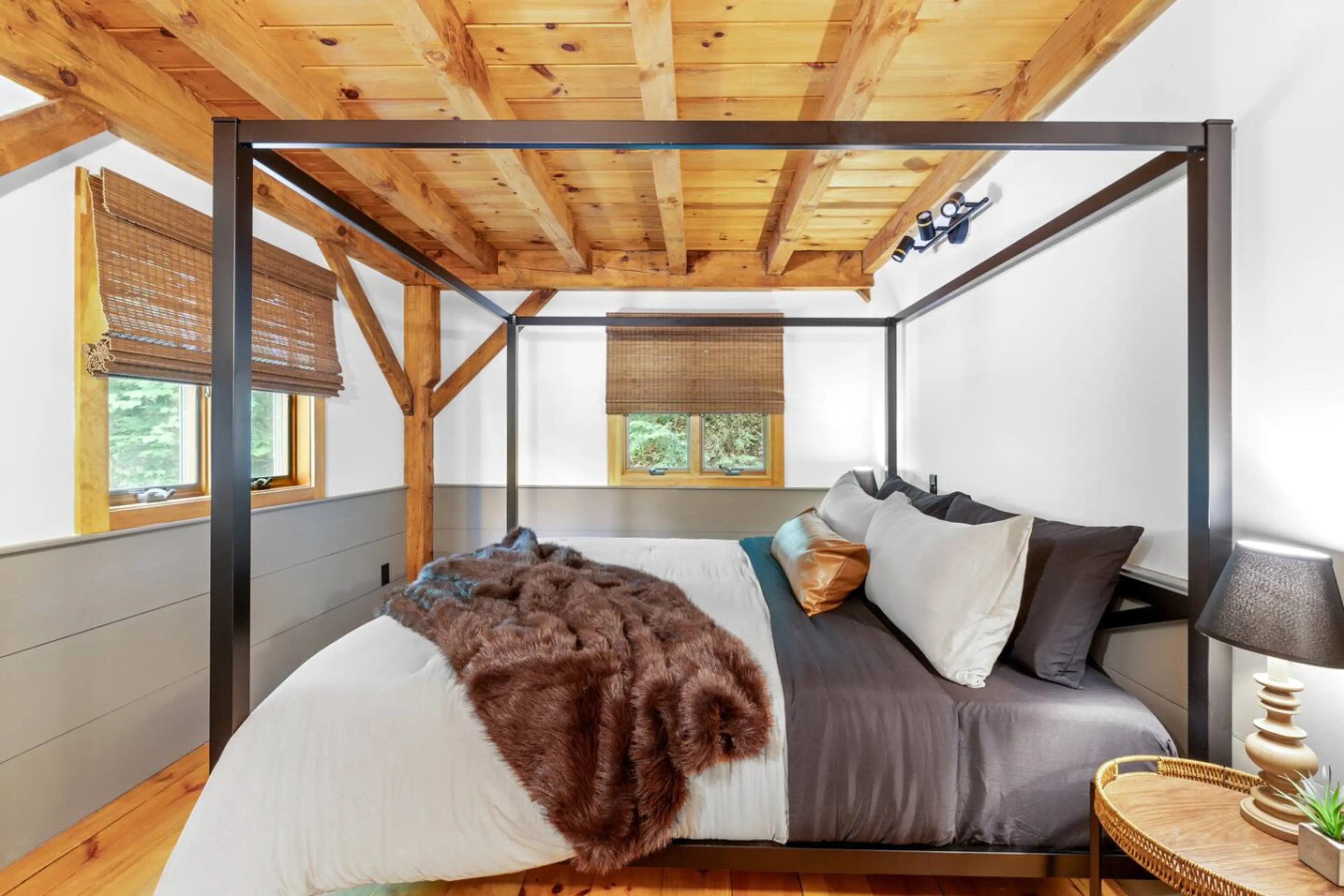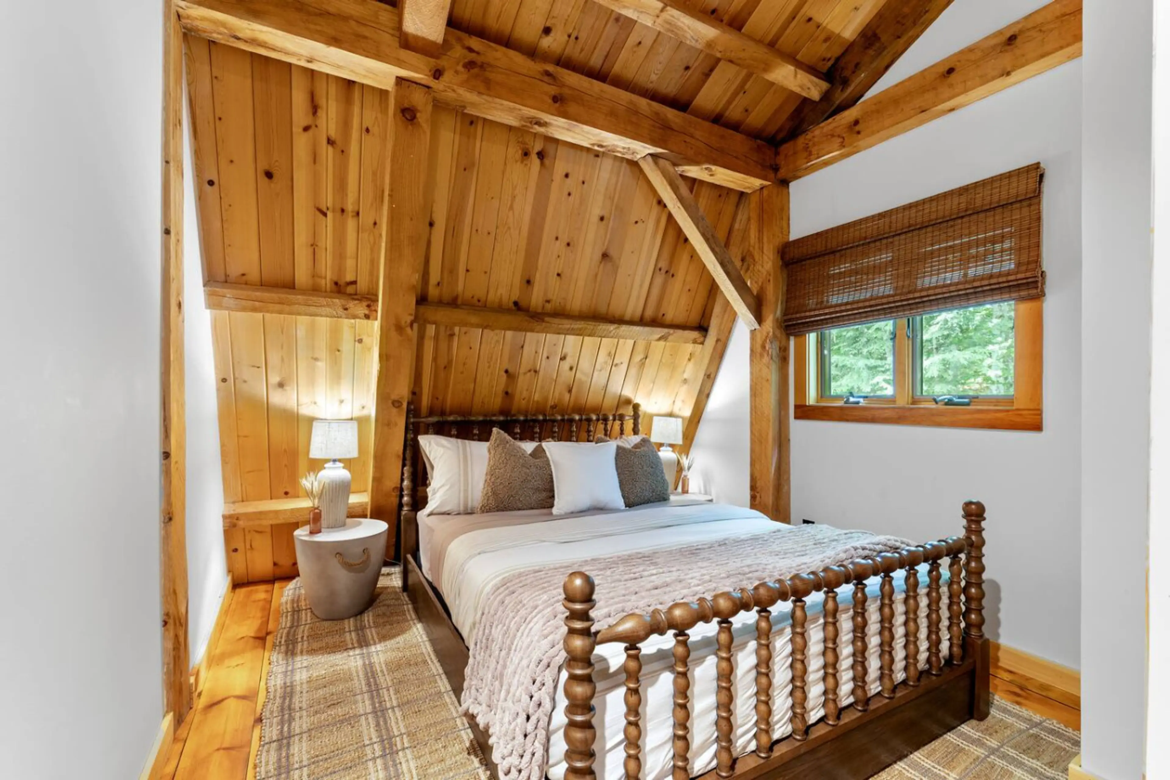 Perched high on a private hill, this one-of-a-kind beam-crafted haven invites adventure and awe. Cathedral ceilings and dramatic windows frame the mountains in rustic elegance, while exposed beams set the stage for unforgettable moments. Soak under the stars in the hot tub, retreat to the king bed, ...